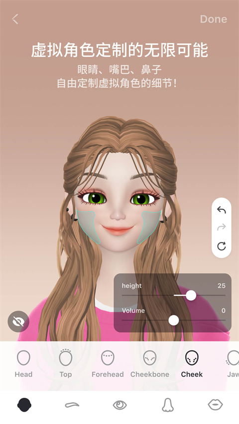 2. 通过捏脸功能微调细节,打造独一无二的虚拟形象。