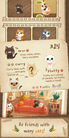 1. 可爱画风:采用卡通风格的画面设计,每只猫咪都栩栩如生,场景细腻,色彩丰富,视觉效果极佳。