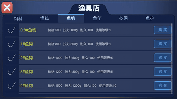 2. 装备升级系统:通过钓鱼获得的资源可以升级鱼竿、鱼线、鱼饵等装备,提升钓鱼效率和成功率。