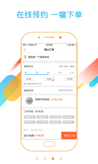 - 一键预约:用户只需在应用中填写服务需求和地点,即可快速预约家政服务。