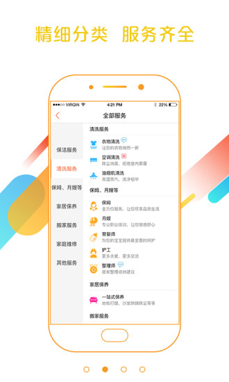 1. 服务分类:详细列出各类家政服务项目,方便用户选择。