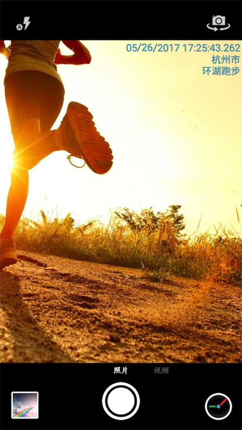 4. 拍摄照片:点击拍照按钮,即可拍摄并自动添加时间、地点水印。