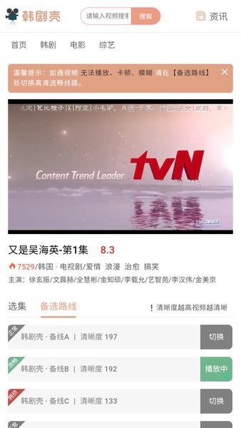 1. 搜索功能:用户可以通过关键词搜索想要观看的韩剧。
