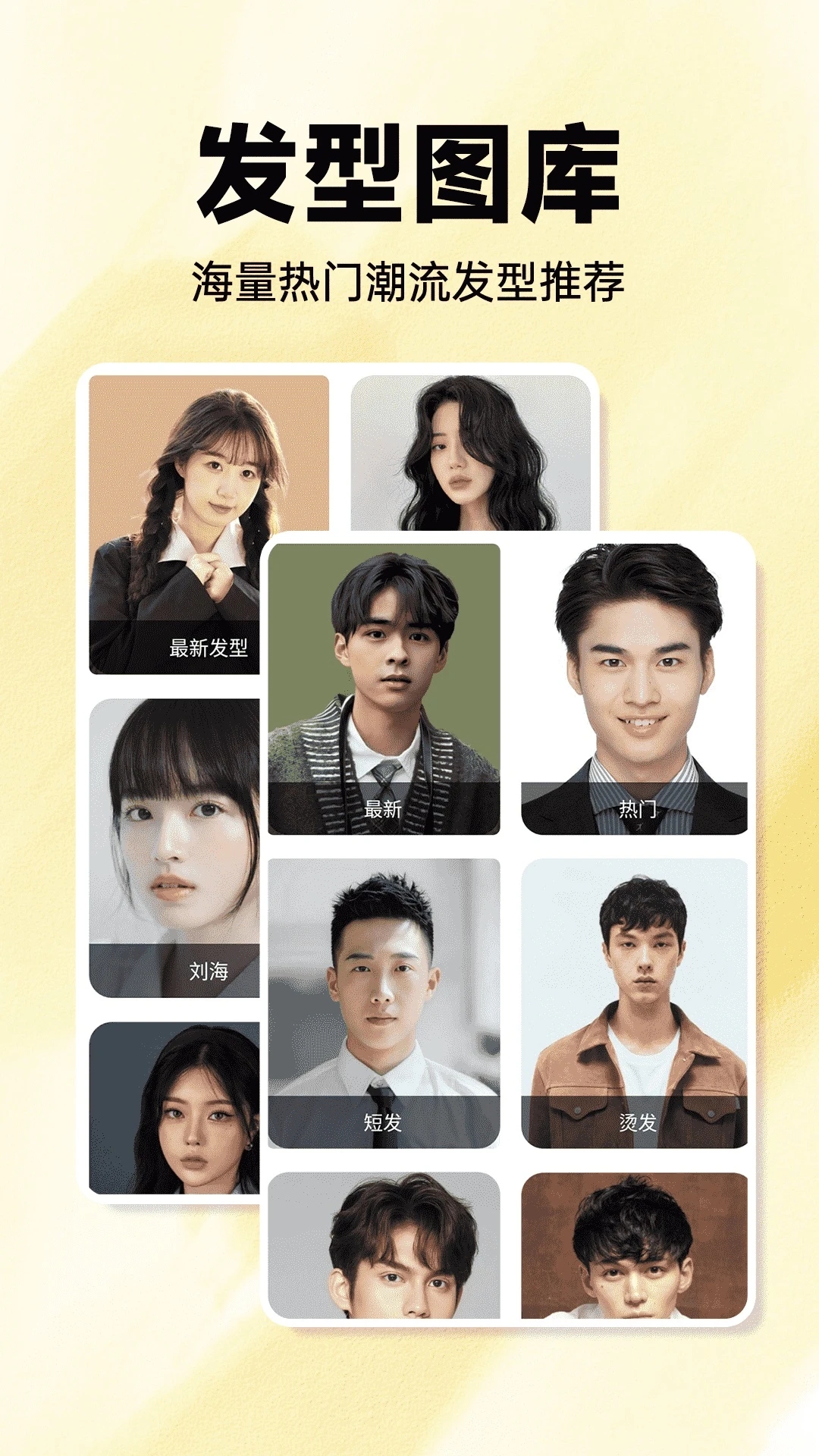 发型百变相机是一款创新的发型设计与试戴应用,旨在为用户提供个性化的发型建议与实时预览,让用户无需走进理发店就能探索多种风格的发型。