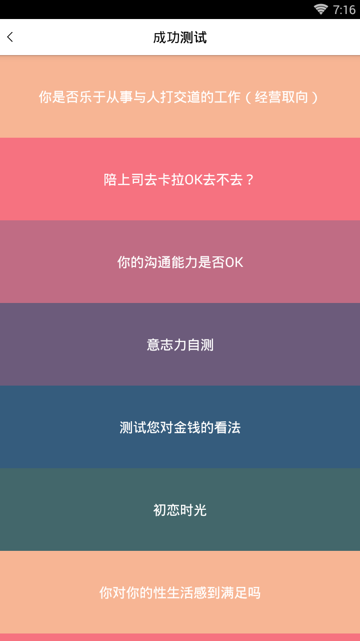 本应用融合了心理学理论与现代科技,提供多样化的心理测试内容,包括但不限于性格分析、情绪管理、职业发展、恋爱观测试等,旨在为用户提供全面、准确的自我认知工具。所有测试均基于权威心理学理论构建,确保结果的准确性和参考价值。