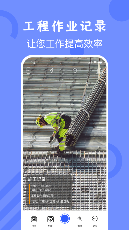 工程随手拍APP是一款专为工程管理人员、工人及质量检查人员设计的高效工具。它旨在通过简化现场记录流程,提升工程质量管理与安全监管的效率。用户可轻松拍摄现场照片、记录问题、追踪整改情况,实现项目管理的透明化与高效化。