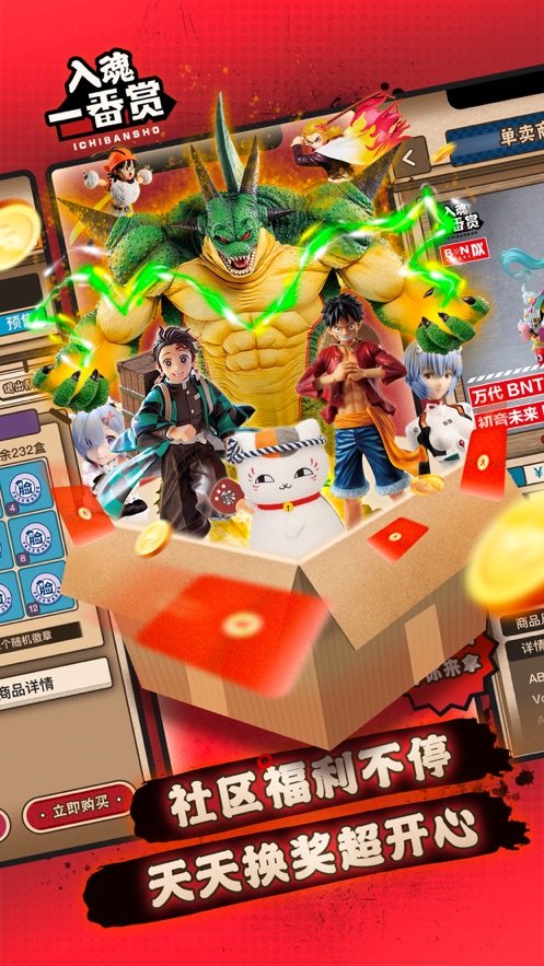本应用汇集了来自全球的热门IP商品,包括但不限于动漫手办、游戏周边、限定服饰等,用户可以通过参与线上抽奖活动,有机会获得心仪的限量商品。软件提供安全便捷的支付系统,确保每一次交易都公平、公正、公开。此外,入魂一番赏还设有社区交流平台,让用户可以分享自己的抽奖经历、商品展示及收藏心得。
