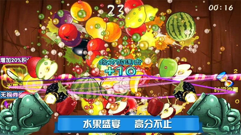 2. 连击与连斩:连续切割多个相同水果可获得连斩得分,提升游戏乐趣。