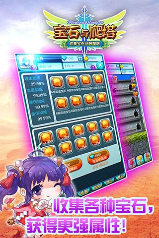 1. 宝石消除:玩家需通过三消或四消的方式消除宝石,每种宝石具有不同的属性加成或特殊效果,如增加金币、提升攻击力、减速敌人等。