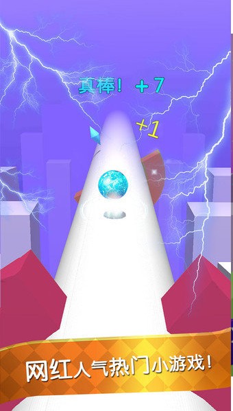 2.只需轻点屏幕即可改变球的移动方向,躲避障碍,超越他人,属于王者的战斗开始了。
