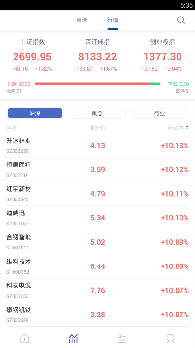 1.自选股:股票代码,拼音,名称智能搜索,方便找到所需股票;