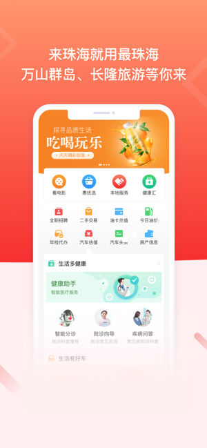 最珠海app一款了解珠海当地的新闻时事的手机软件。海量关于珠海当地的新闻时事等你来观看,还会有很多美食娱乐景点等之类的介绍。你还可以在上面找到适合你的工作,让你每天都能了解到更多的身边资讯等你一起来。上面还会有很多应用小工具等你一起来使用。感兴趣的可以一起来关注浏览评论。让出行更方便就医更便捷。最珠海APP还有各类吃喝玩乐服务,万山群岛长隆旅游等你来,是本地群众旅游度假、线上购物、便民办事等最佳选择。用户在软件中每天都能找到最新的乘车线路,,让你在软件中每天都能免费的骑行各种交通工具,软件中还能为你预订酒店门票景点。喜欢就来下载吧!