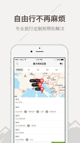 你可以在旅行君里直接根据方案推荐来实行预订,或者选择让定制师为你完成。
