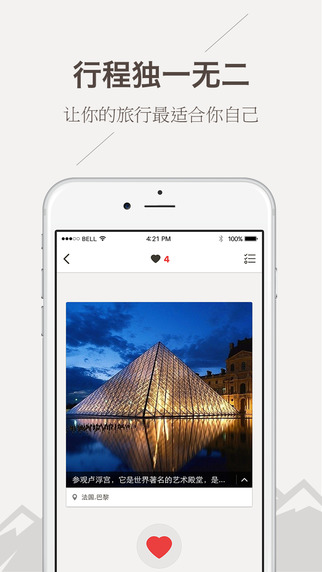 只需输入出境游意向目的地、旅行天数、旅行人数、价格期望,旅行君就能为你设计出适合你的旅行方案。比如,你要去法国旅行,那么只需简单的设置,就能生成法国自由行路线、每一天的详细行程安排、交通衔接等,大大省却自己做出国旅行攻略的时间。