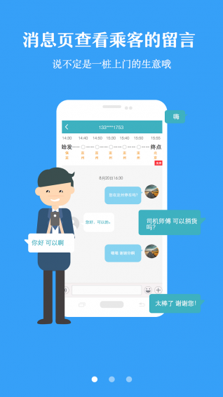可发布行车路线,乘客可根据路线与司机交流订票、捎货
